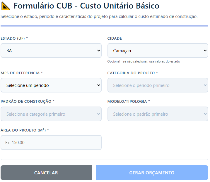 O CUB é um índice divulgado mensalmente e usado como referência para estimar custo de construção. Ele não substitui um orçamento executivo completo, mas dá uma base inicial confiável para planejamento.